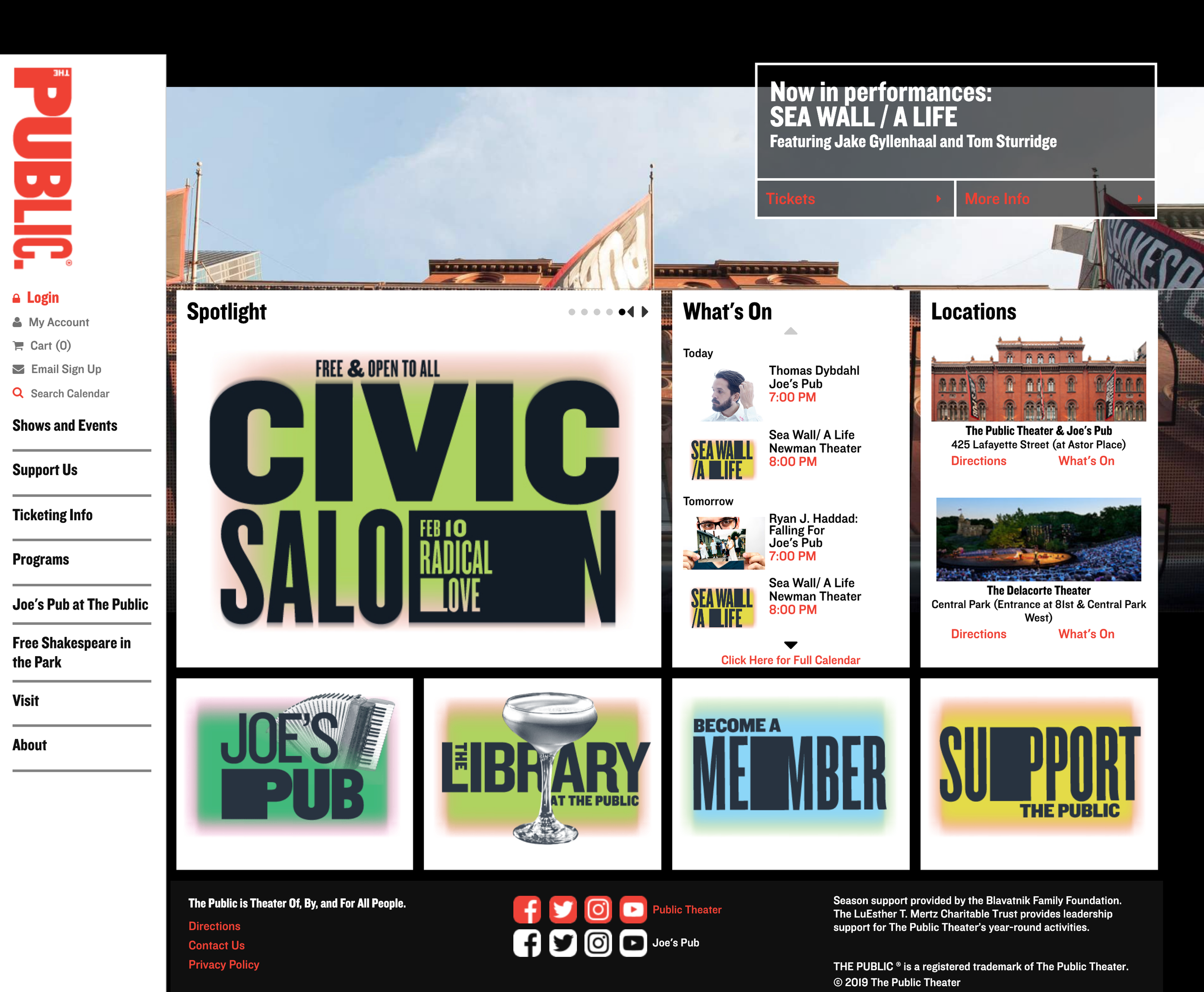 I'm honored to be part of The Public Theater's website refresh. As a reputable and beautifully designed brand, it was a great experience to learn how to adapt their website while maintaining the overall look and feel of The Public Theater.